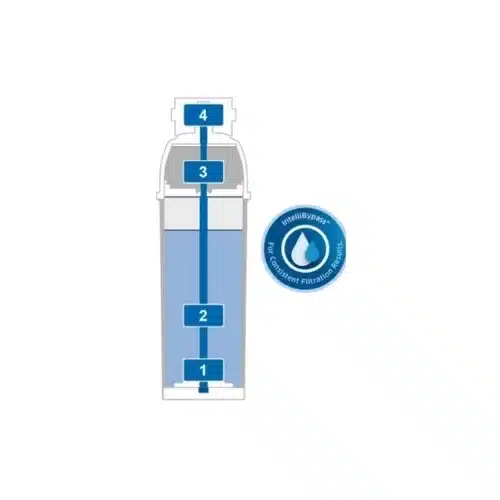 טכנולוגיית IntelliBypass הייחודית מאפשרת זרימה יציבה של מי מעקף ללא קשר לזרימה הנפחית. כך שומרים תמיד על איכות מים גבוהה, בייחוד במקרים של ספיקת מים נמוכה.